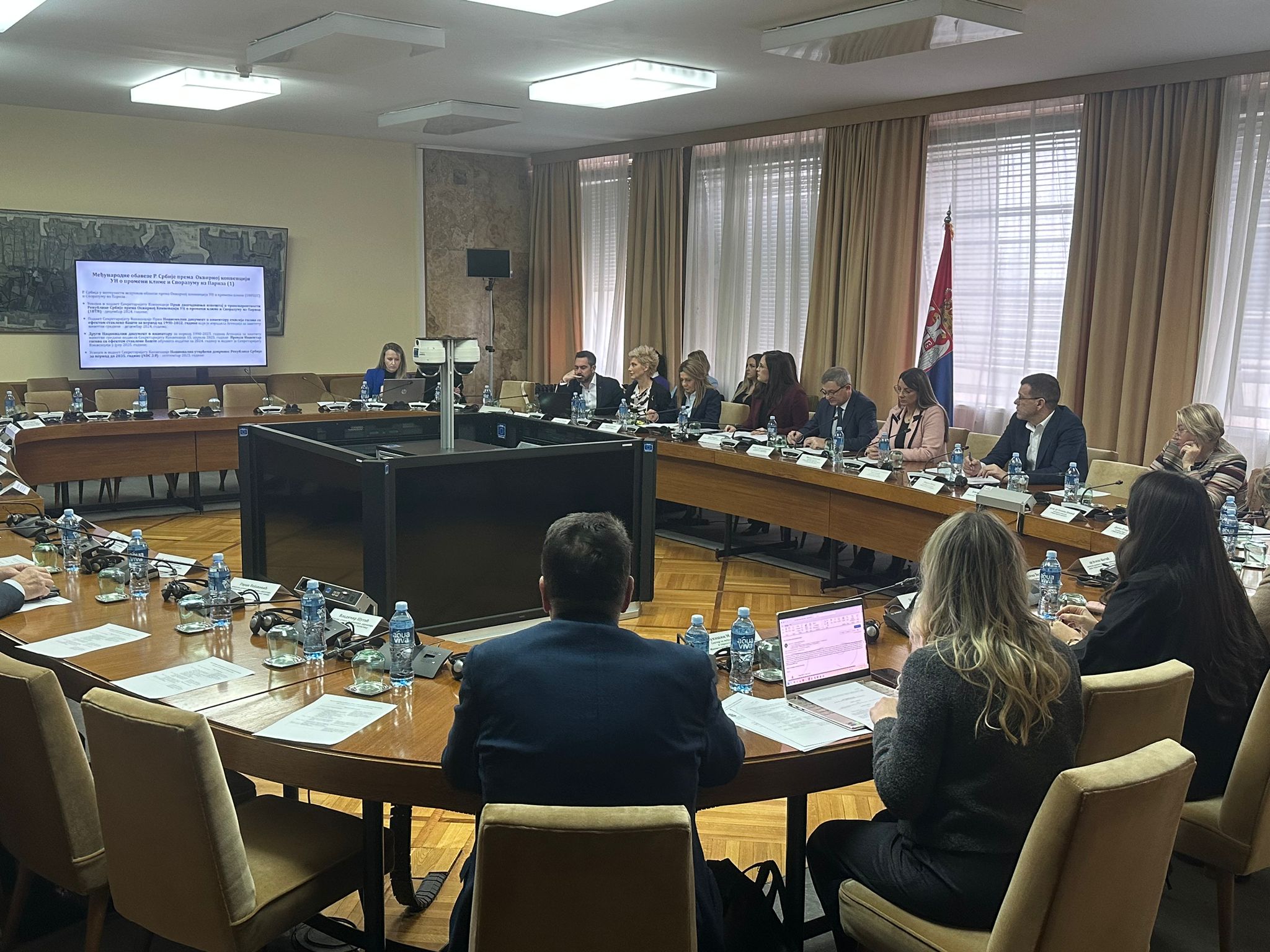 Председница Националног савета за климатске промене и министарка заштите животне средине Сара Павков говорила је о резултатима и оствареном напретку ресорног министарства у области климатских промена, док су представници Министарства финансија представили Закон о порезу на емисије гасова са ефектом стаклене баште и Закон о порезу на увоз угљенично интензивних производа.