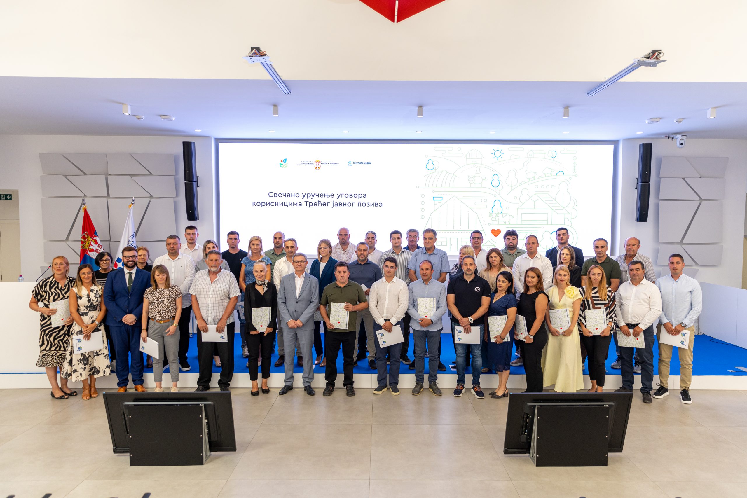 Министар пољопривреде, шумарства и водопривреде проф. др Драган Гламочић уручио је данас уговоре корисницима Трећег јавног позива Пројекта конкурентне пољопривреде Србије, који се реализује у сарадњи са Светском банком.