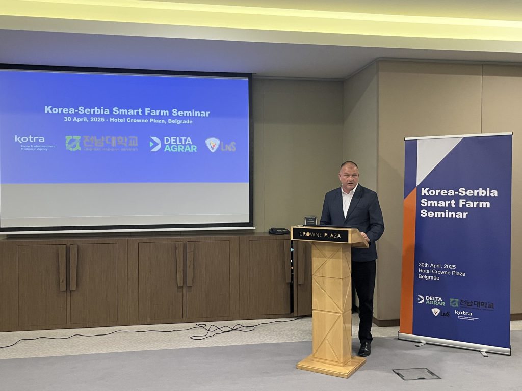 Државни секретар Министарства пољопривреде, шумарства и водопривреде Атила Јухас поручио је данас да је време дигиталне пољопривреде већ дошло – и да Србија жели да буде њен активан учесник. Обраћајући се на Корејско-српском семинару о паметним фармама, у организацији компаније Делта Аграр и корејског партнера LNS Co, Јухас је истакао да савремене технологије као што су дронови, сензори и системи за прецизно управљање производњом мењају начин на који размишљамо и радимо у пољопривреди.