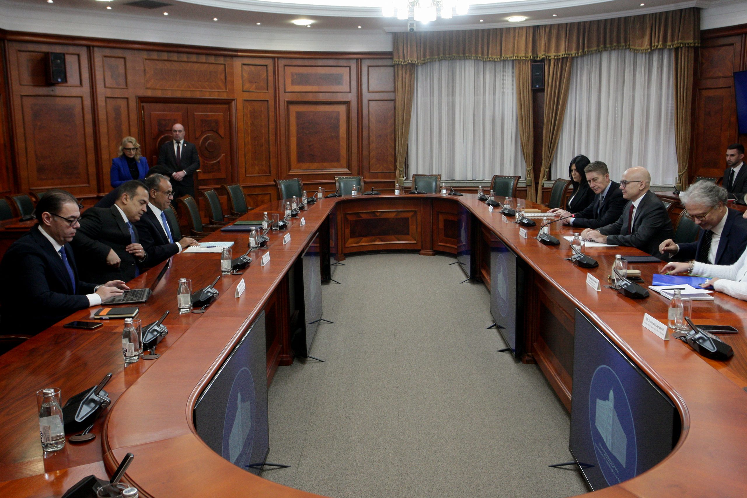 - Beograd, 22. januara 2025. – Predsednik Vlade Republike Srbije Milo Vuèeviæ sastao se sa ministrom spoljnih poslova Arapske Republike Egipat Bedrom Abdelatijem. Ovom prilikom Ministarstvo poljoprivrede, umarstva i vodoprivrede Republike Srbije i Ministarstvo vodnih resursa i navodnjavanja Arapske Republike Egipat potpisaæe Memorandum o razumevanju u oblasti vodnih resursa i navodnjavanja. Sastanku su prisustvovali Aleksandar Martinoviæ, ministar poljoprivrede, umarstva i vodoprivrede i Basel Salah, ambasador Egipta u Srbiji. FOTO TANJUG/ SAVA RADOVANOVIÆ/ bs